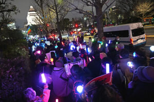 ★3月10日夜の国会正門前、「WE WANT OUR FUTURE」と「憲法9条を壊すな!実行委員会」の呼びかけによる「平和憲法を守るための緊急アクション 」には8000人の人びとが集まった。若い人が多い。「改憲、戦争」に突き進もうとする高市政権に対して、NO!の声が大きく上がり始めた。この流れは止まらないし、止めてはならない。