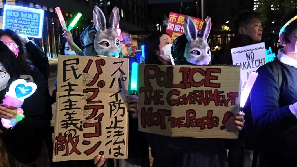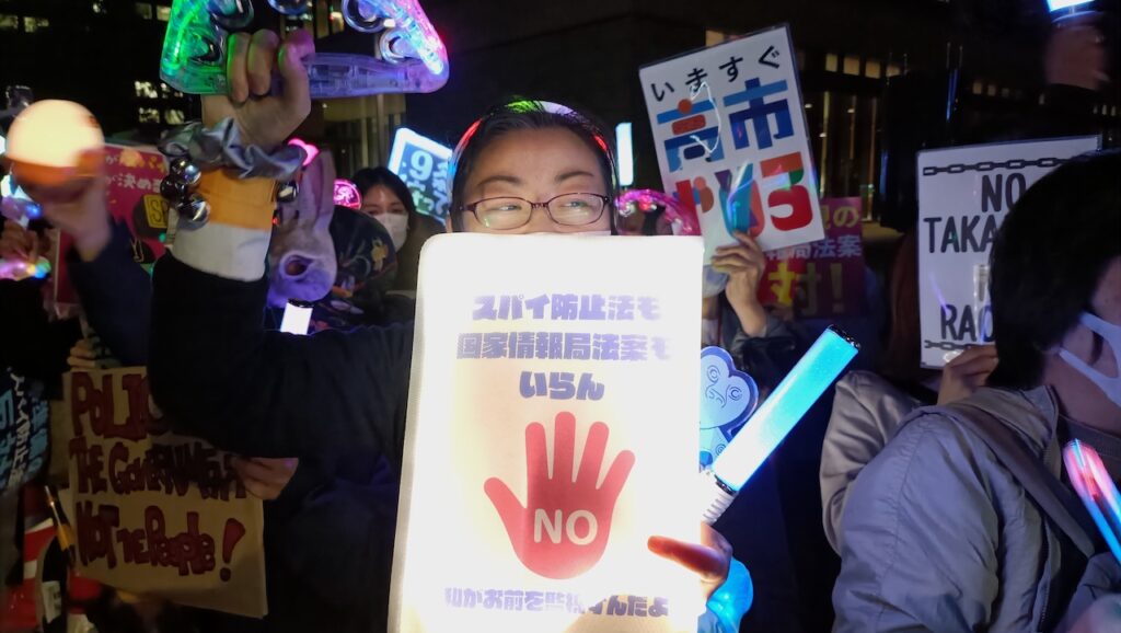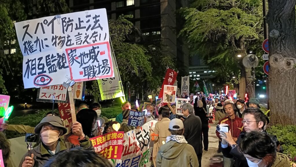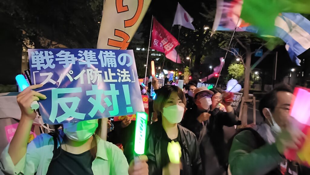 4月17日夜、「市民総監視のスパイ防止法・国家情報局法案反対!4・17議員会館前ペンライト行動」が行われ、3500人(主催者発表)が集まった。国会周辺はペンライトの光で埋まり「スパイ防止法」に反対するコールに包まれた。