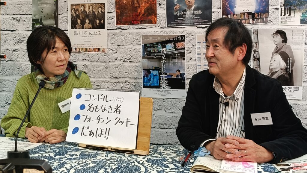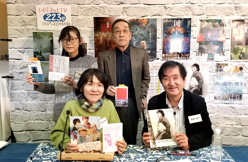 今年最後の第223号放送は12月10日、恒例の「映画と本で振りかえる2025年」をお送りしました。大場ひろみ、志真秀弘、堀切さとみ、永田浩三の各氏が出演し、映画と本について大いに語りました。本のパートが30分、映画のパートが予告編上映も含めて60分で、全体は90分ほどの放送でした。