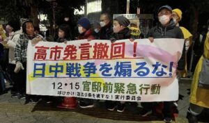 「高市発言撤回!日中戦争を煽るな12•15官邸前緊急行動」が12/15、18:30首相官邸前で開かれた。高市政権の「戦争もかまわない」乱暴な政治姿勢に抗議! 300名が結集。集会は菱山南帆子さんの進行で、「高市発言今すぐ […]