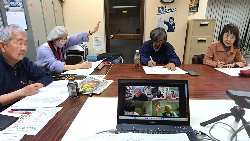 レイバーネット3月川柳句会は、3月31日(火)郵政共同センターで開かれました。リアル参加が6人、オンライン3人、メール選句1人の計10人でした。投句では、日米首脳会談の高市のひどさ、国会前ペンライト行動の盛り上がりをテーマしたものが多かったです。前者では「赤恥の日本外交咲き誇り」(スカラベ)「首相見て日本の遅れ世界知る」(芒野)がありました。日本では成功と報道がされているが、じつはみっともない会談で、世界の眼は冷ややかであることが表現されています。また「密約は機微の団子に丸め込み」(奥徒)は4点句でした。日米交渉に付きものの「密約」ですが、機微と吉備団子をかけていて「川柳らしい川柳でうまい」と好評でした。