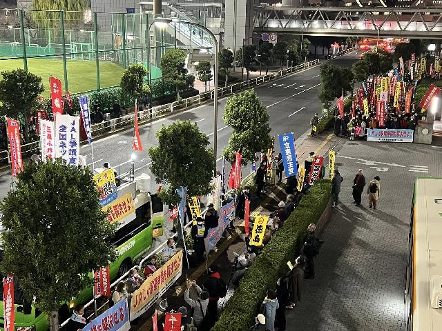 ◆JALは経営破綻の責任をとらず、必要のない解雇を強行した。経営破綻の責任は社員にない! JAL経営陣は誰も責任を取らず、2010 年大晦日に必要もない165名の人権侵害の解雇をした。12月9日、18:30、JAL本社を包囲する大集会が開催され、JAL本社を覆いつくす参加で争議の早期解決を訴えた。(報告=宮川敏一)
