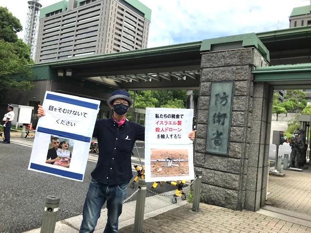 「防衛省は、殺戮支援のドローン輸入計画を中止してください!これ以上、ガザの子ども たちを殺さないでください!」