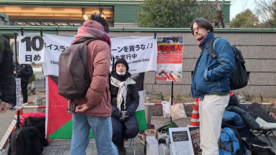 日本は武器を輸出しているが、今回のハンストはイスラエル製の武器を日本企業が買うことに対する抗議だ。先制攻撃する国になるために。つまり、遅れを取り戻すために、優れた武器を買う。高市自民党が勝てば改憲し、自分から殺せる国になる。ガザで起きている殺戮に目を覆うくせに、同じことを日本がやれるようになるのだ。