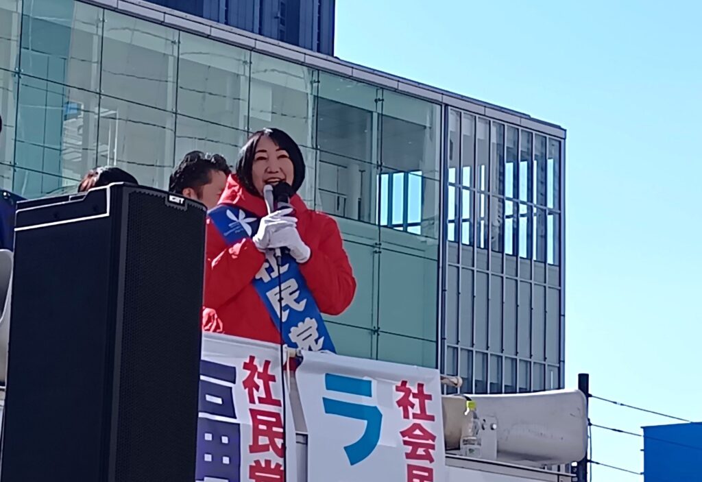 1月27日新宿駅南口で、社民党から東京比例に出ている大椿ゆうこさんの第一声を聴いた。