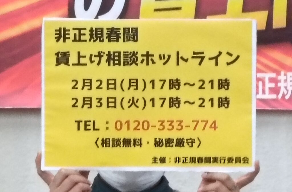 いま全国に約2800万人の非正規労働者がいて日本社会を支えている。しかし、かれらの地位は低く、声をまったく上げられない状況だ。今回の「非正規春闘」に参加する組合は35労組で組合員数は約4万人。けして多くはない。しかし、その4万人が先頭に立って全体の低賃金状況を打開するために声をあげた。スシロー、はま寿司、かつや、ヤマト運輸をはじめ、語学・出版・清掃・学習支援・生協・保育などあらゆる職種にわたる企業と一斉に交渉する予定だ。「スシロー」では、宮崎店舗で2回ストライキを打ち、6%の時給引き上げを勝ち取った事例もある。