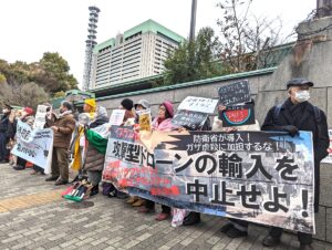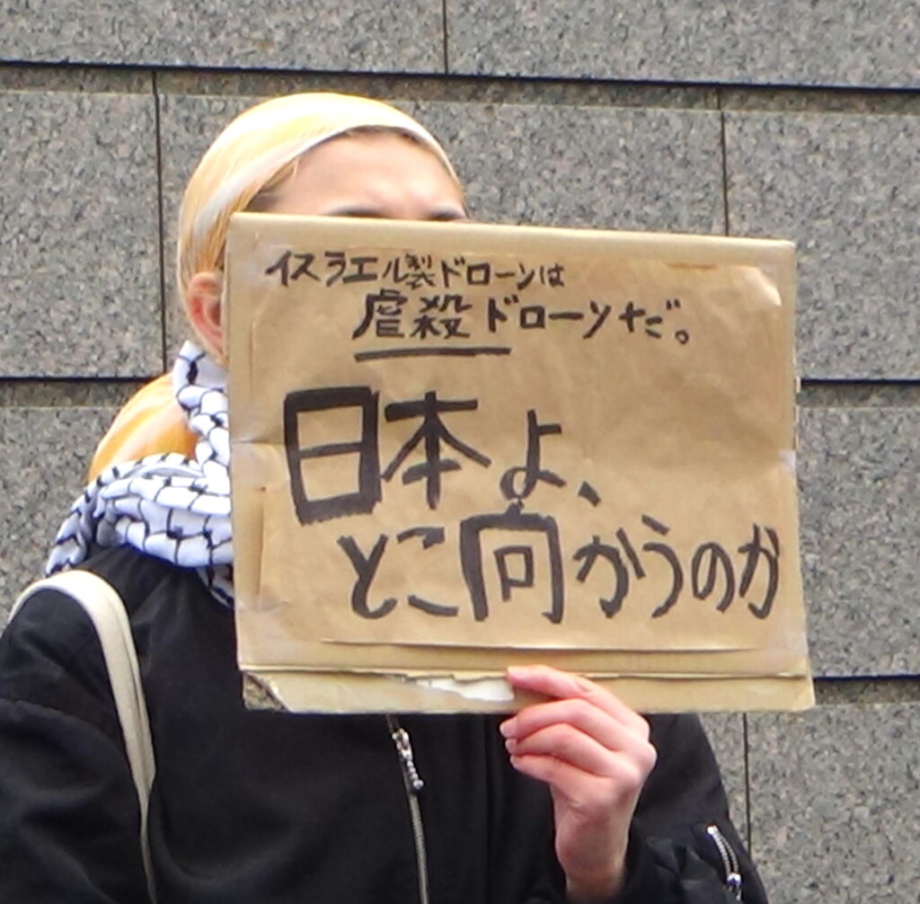 行動後、記者はこの女性に参加の思いを聞いた。こう答えた。「自分も子どもがいるが、私たちの税金が虐殺ドローンに使われたらたまらない。絶対反対です」と。そして「高市自民圧勝に落ち込んでいた。このままでは暗黒の時代になる。でも落ち込んでいたら向こうの思うつぼ。だからここで踏んばって動き出そうと思った。それできょうここに来た」と。笑顔で話してくれた。