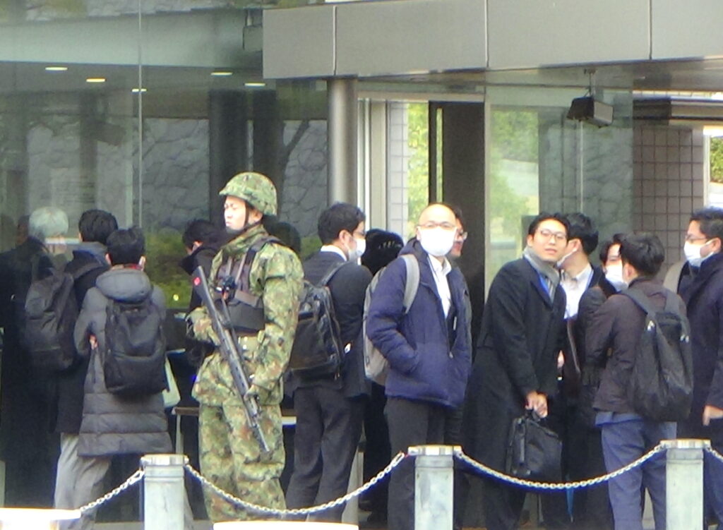 集会では、ある女性がマイクを握った。そして日本の反戦歌「教訓」を浪々とうたった。「命はひとつ 人生は一回 だから 命をすてないようにネ あわてると つい フラフラと 御国のためなのと 言われるとネ 青くなって しりごみなさい にげなさい かくれなさい」と。「命はひとつ」の歌声は、防衛省職員に届いただろうか。