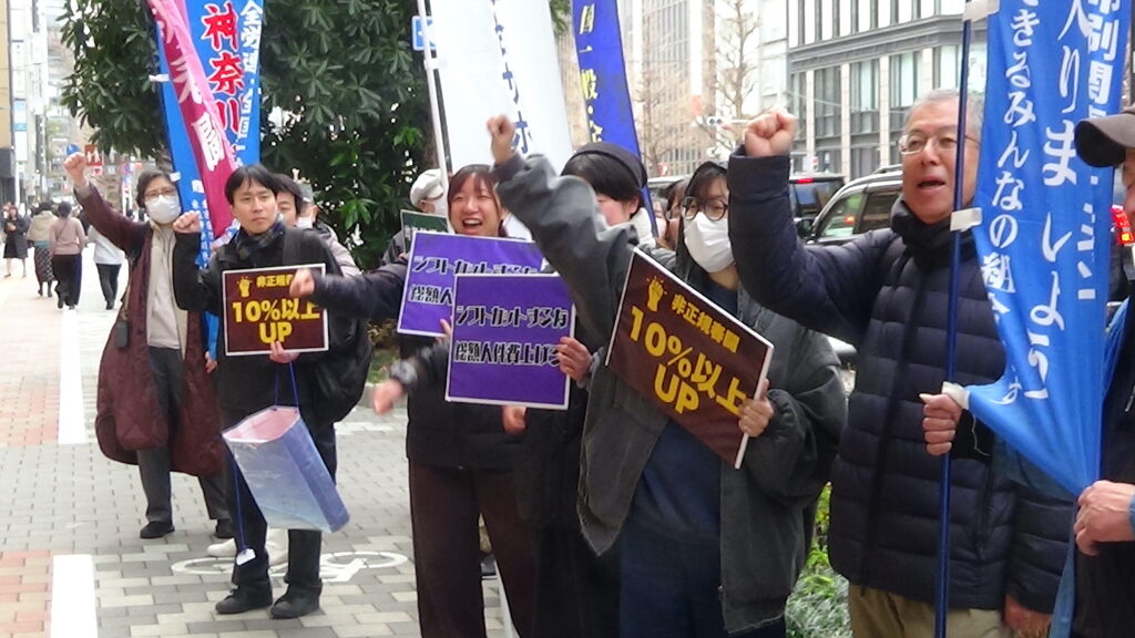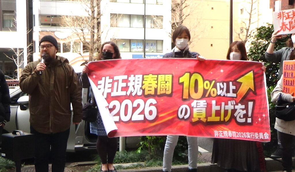 この日は、ほかに「回転寿司ユニオン」、「出版情報関連ユニオン・最賃労働者による行動」があり、午後には厚労省で記者会見も行われた。非正規春闘実行委員会では「3月末までに10社以上で非正規労働者の賃上げを求めてストライキを実施する」とのことである。(M)