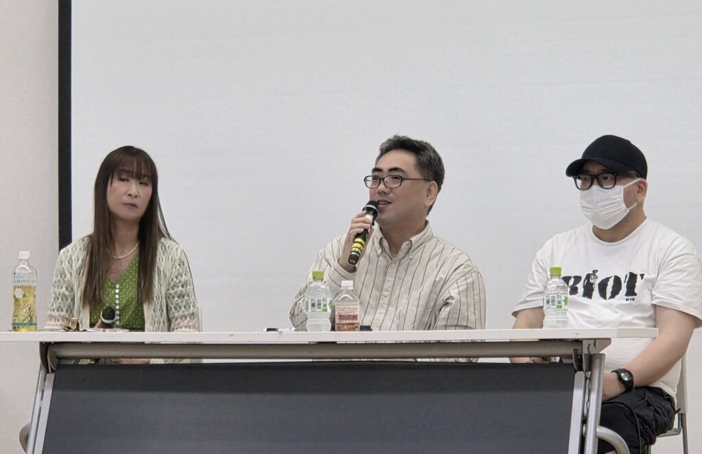 ❻最後のセッションは「「外国人支援の現場から 生存権を奪われた外国人支援の現状と希望を紡ぐ」反貧困ネットワークで外国人支援を担う加藤美和さんと原文次郎さん、難民移民FESの金井真紀さん、おとなりカフェのシェフで強制送還の恐怖にさらされている