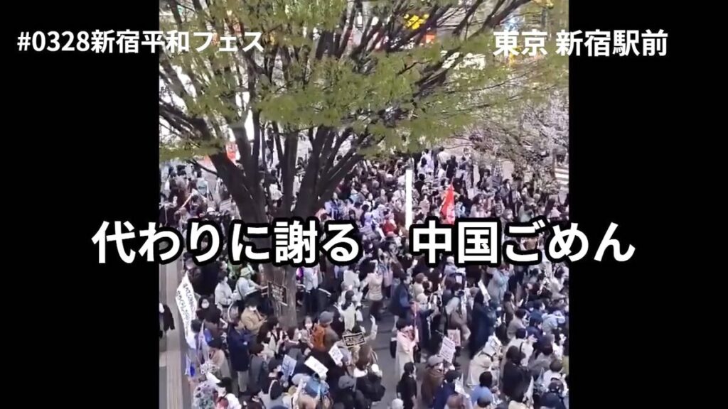 これに関わり、去る3月28日、新宿駅近くで行なわれた「新宿平和フェス」での顕著な動きを思い出す。私は現場に行っておらず、翌日のユーチューブで記録映像を見ただけだ。過半は若いと思われる人びとが集まり、短いスローガンを唱和する、いわゆる「コール」を行なっていた。「自衛官テロ謝れ、政府」「自衛官テロ謝れ、高市」「テロの責任、真面目に取れよ」「テロの謝罪、真面目にしろよ」「高市謝れ」「小泉(防衛相)謝れ」「代わりに謝る。中国、ごめん」などのコールが聞こえてきた。多くの人びとがペンライトを振りかざしていた。自衛官の中国大使館侵入事件から4日後のことである。