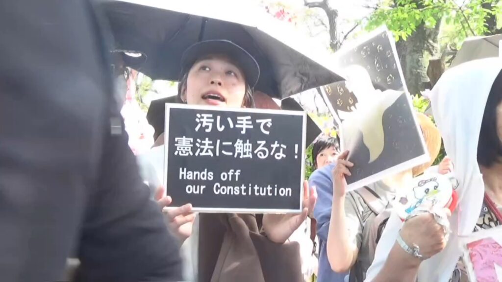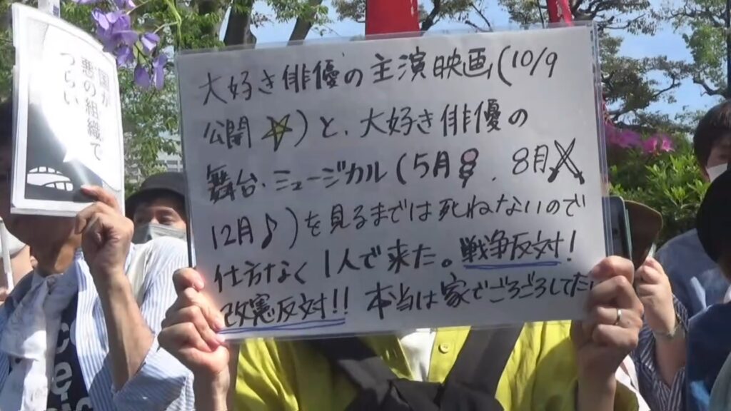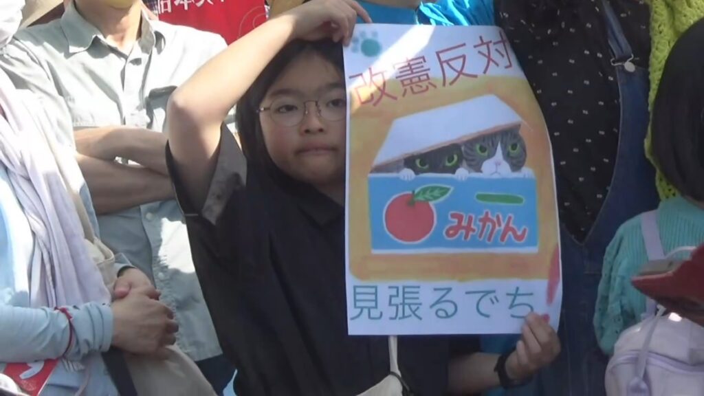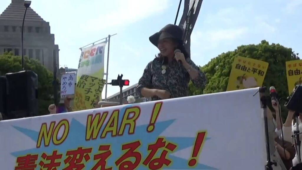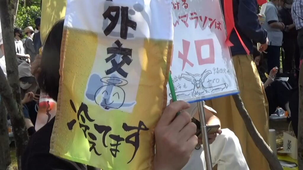 「今日は憲法の文化祭です!皆さん、工夫をこらしたプラカードや表現に注目してください」