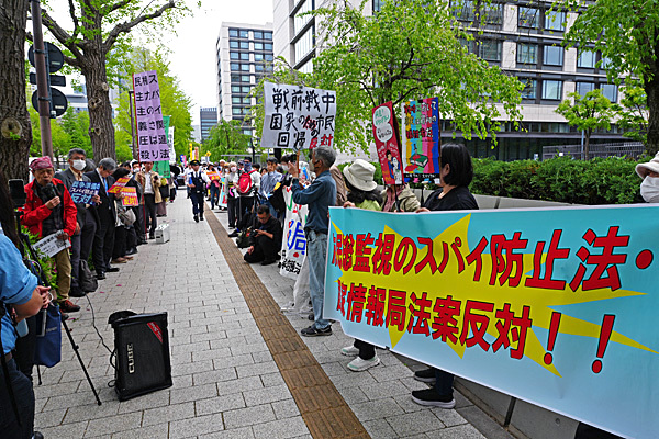 昨日(4/22)の昼の「国家情報局法採決許すな!議員会館前行動」には、300名の参加しました。また、夕方の内閣委員会の採決時には約80人の市民が、採決反対のコールをあげました。国家情報局反対の声は確実に広がっています。内閣委員会での採決に抗議し、同法案の廃案を求め頑張っていきましょう。