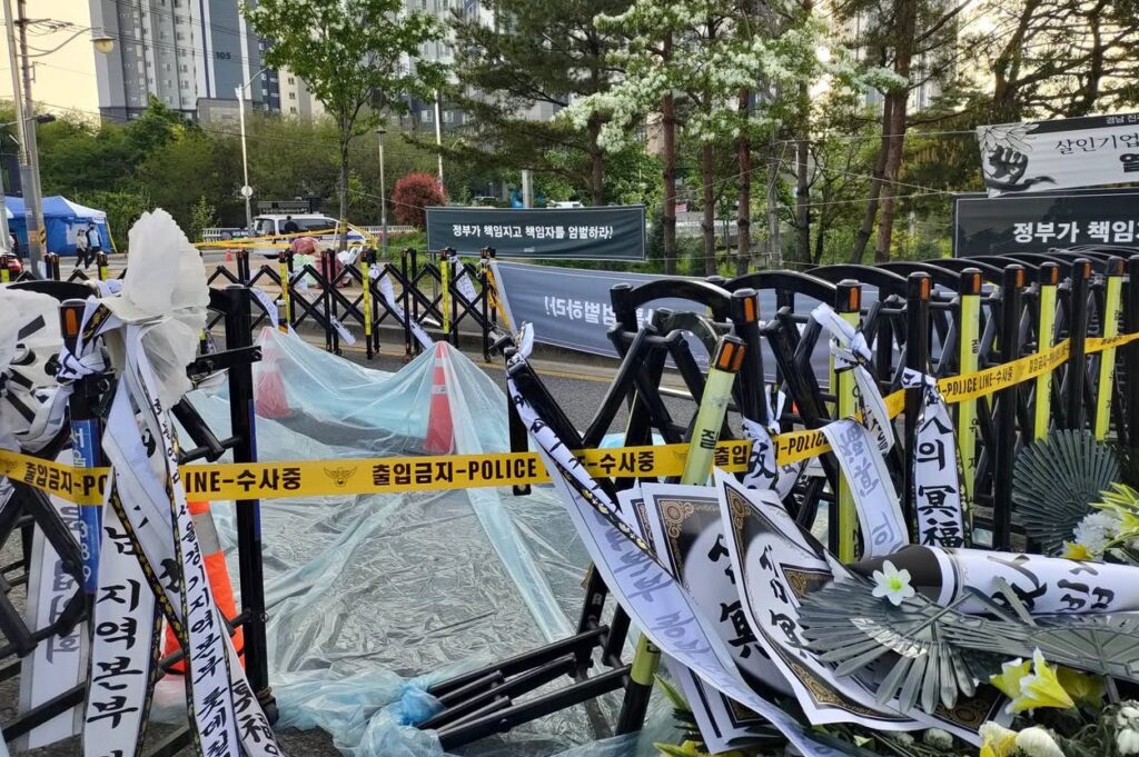 ●韓国で、ストライキ中の労働者が、車にひかれて亡くなったということを知ったのは、韓国に行く直前。民主労総貨物連帯の労働者、ソ・ガンソクさん。貨物ドライバーの仕事は、その労働者性がなかなか認められず、交渉を求めて約40人が座り込んでいた。そこに警察にそそのかされたスト破りの労働者が、車で突っ込んできたとのこと。先頭で阻止しようとしたソ・ガンソクさんがひかれて亡くなった。民主労総慶南地域本部の本部長キム・ウニョンさんに案内していただき、労組と話し、またお焼香させていただいた。