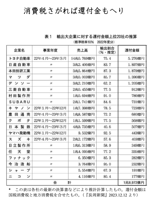 消費税さがれば還付金もへり
